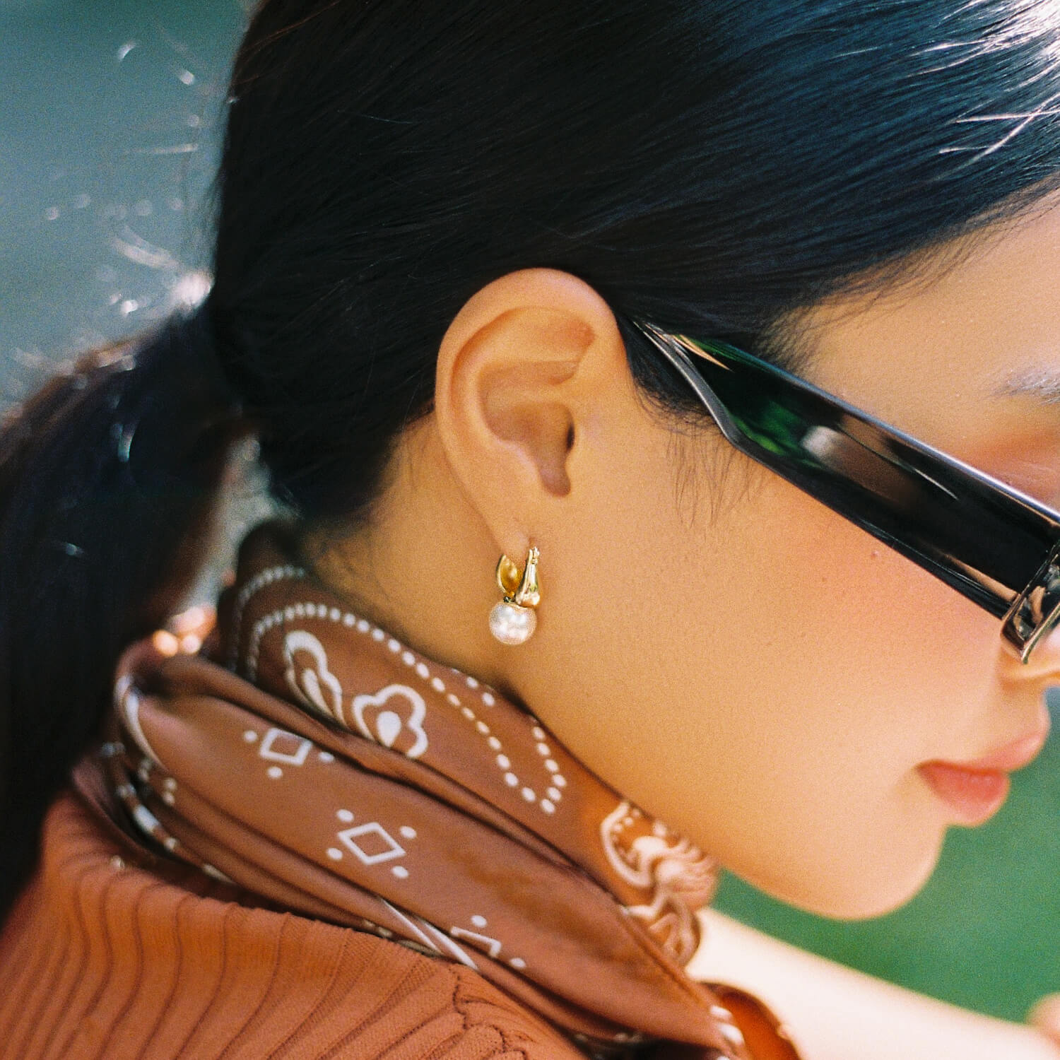 Dara is a contemporary yet timeless style you'll want to wear everyday. At the bottom of its ovoid body sits a sizeable shell pearl. These huggies are perfect for any and every occasion.