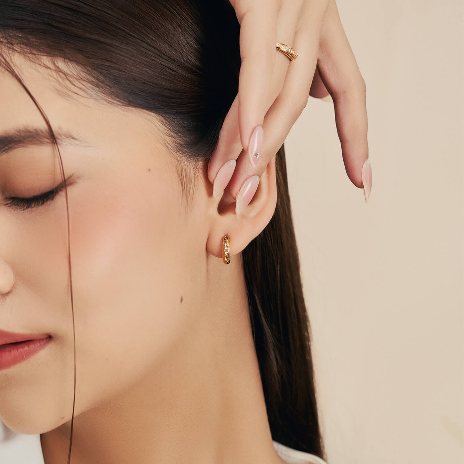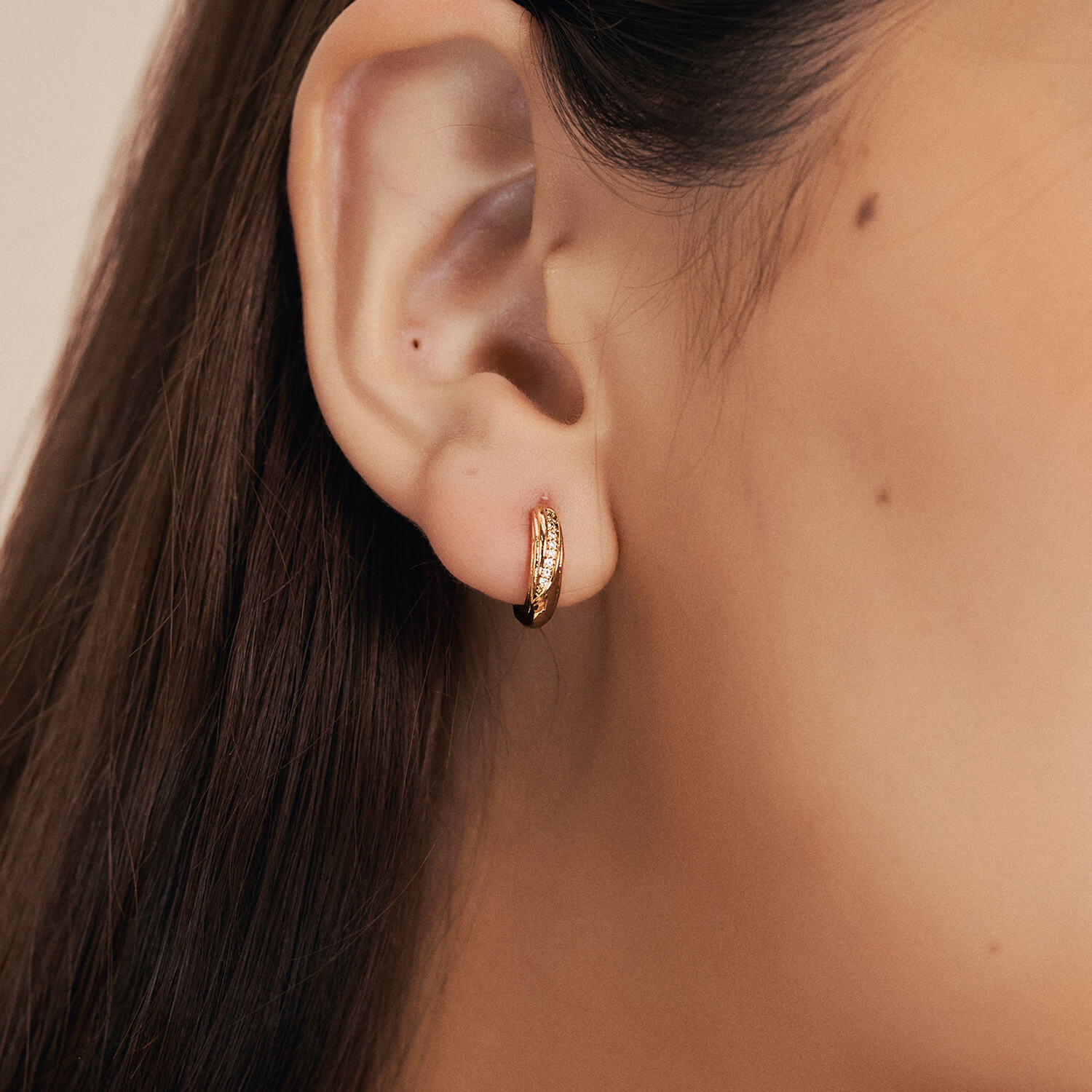 Add a sprinkle of shine and sparkle with Demi. The curved ridges on these huggies are encrusted with cubic zirconia stones.