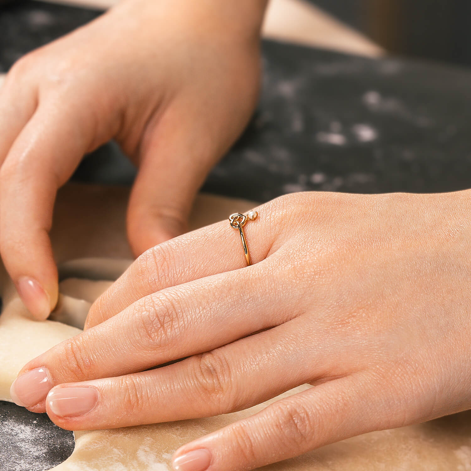 With its rounded knot design shaped like a heart, and a pearl drop charm, the Jubilee ring is as modern as it is timeless.