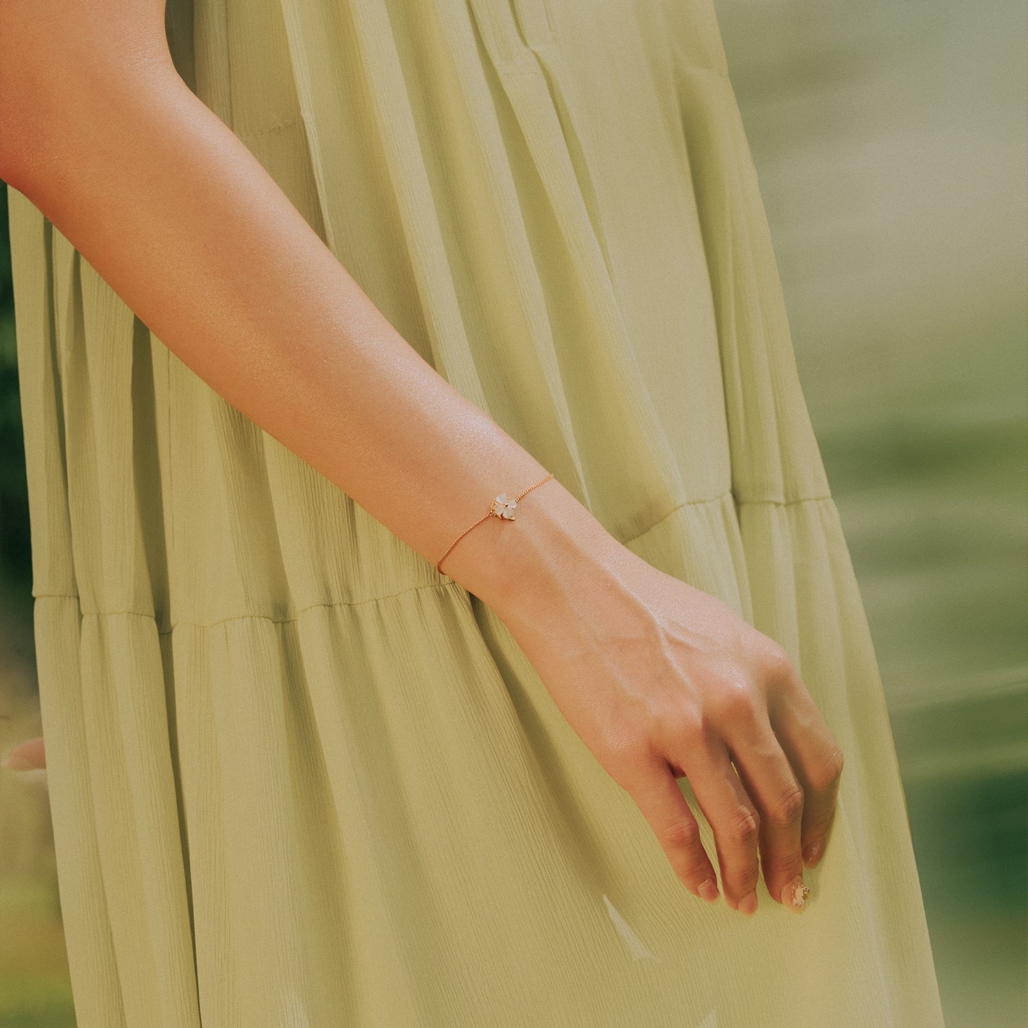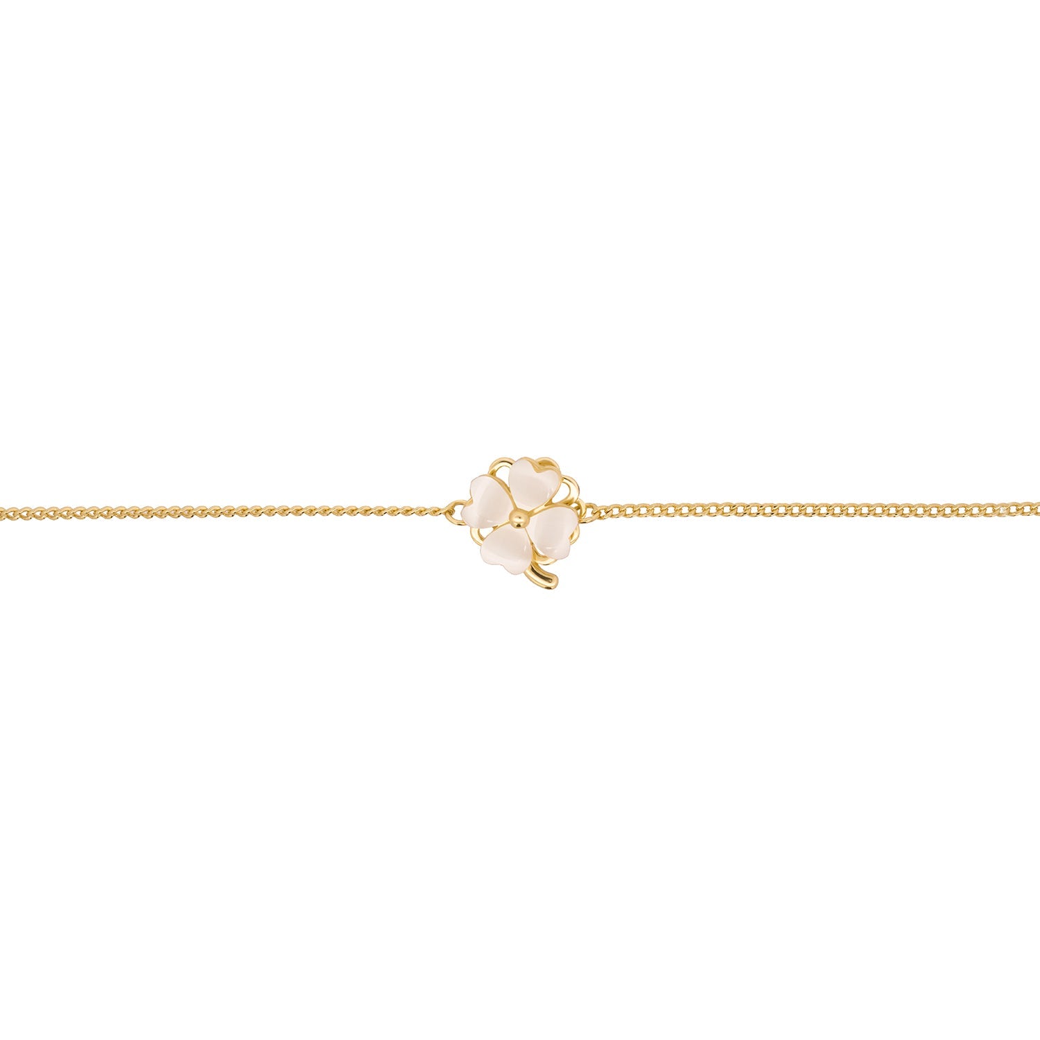 Keep your fidgety self entertained with this fun and interactive spinning piece. Available in shimmering shades of white, green, and blue, the four leaf clover pendant on the Lucky Swivel Bracelet features a mesmerising, luminous cat's eye effect.