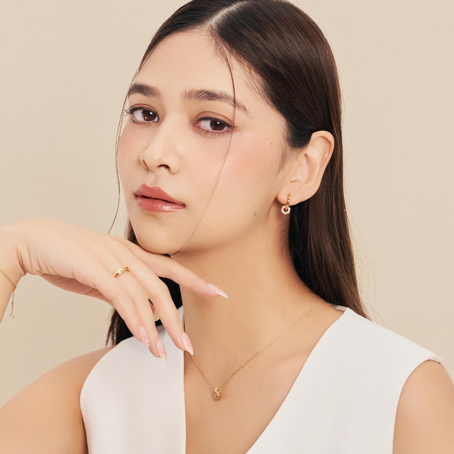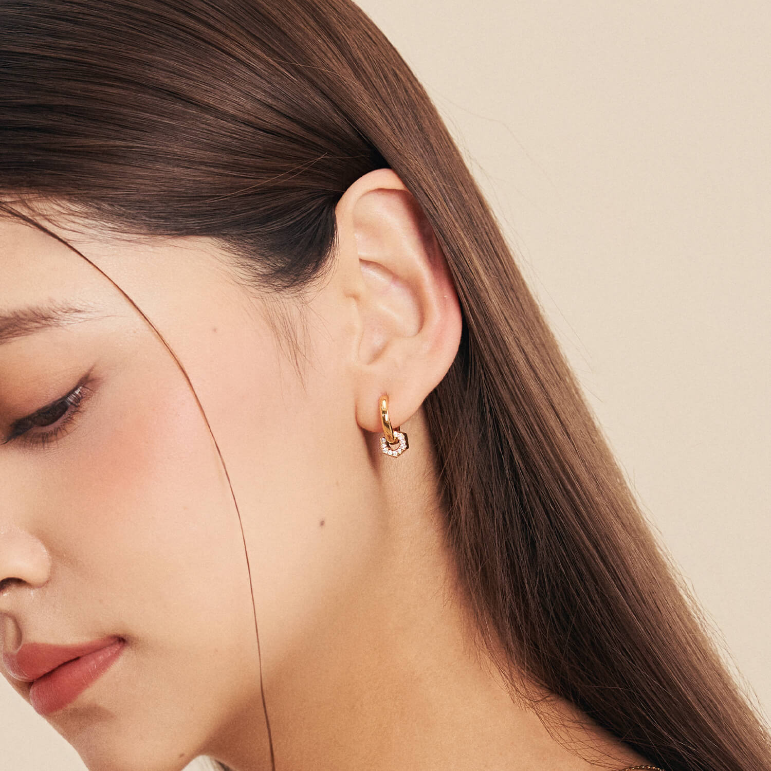 An edgy, alternative addition for the cool girl who's looking for a sprinkle of sparkle and shine. Shaped after a hex bolt, Sia's structured form gives off a touch of tough. Wear it with its bracelet and necklace counterparts.