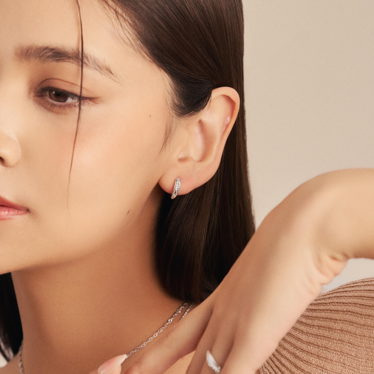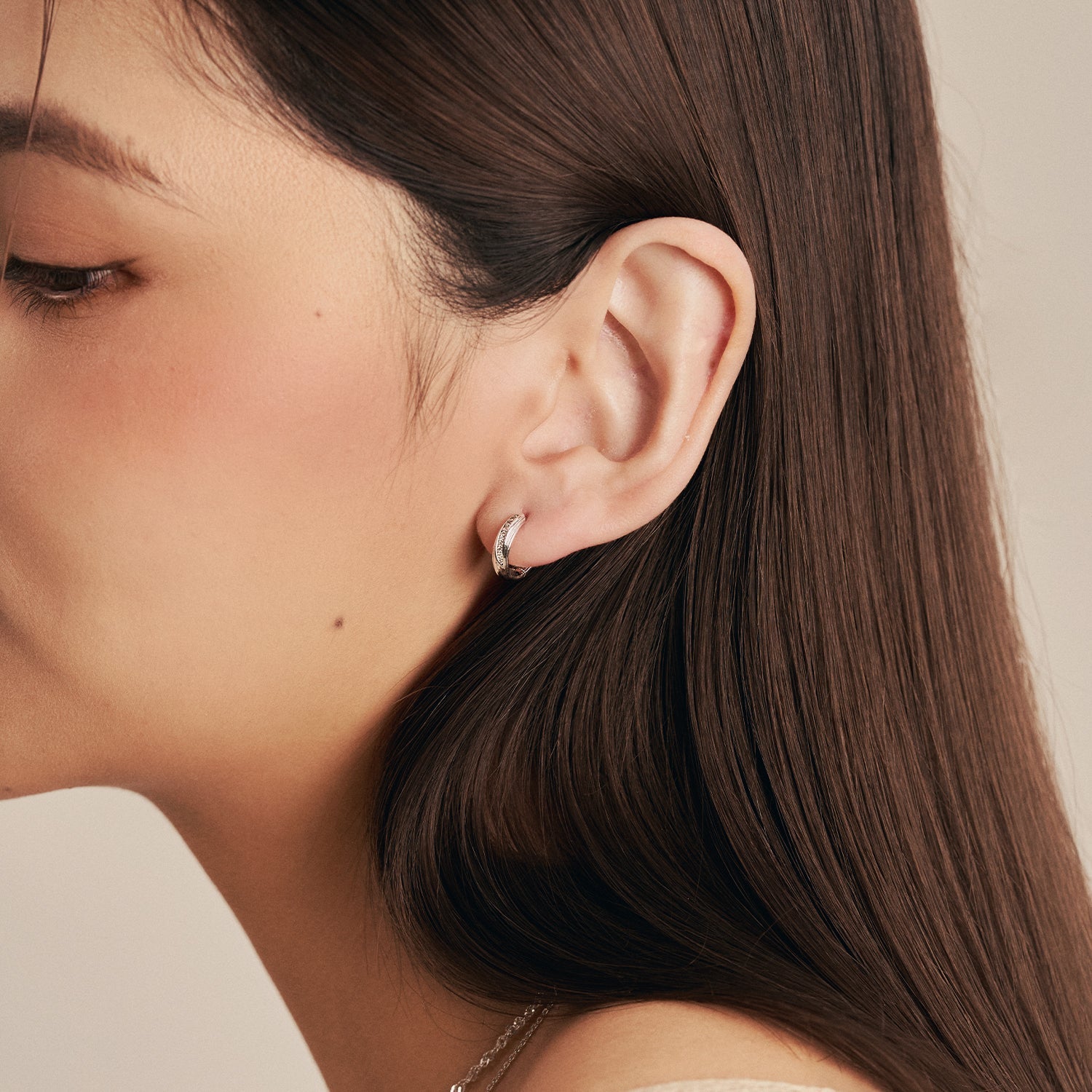 Add a sprinkle of shine and sparkle with Demi. The curved ridges on these huggies are encrusted with cubic zirconia stones.