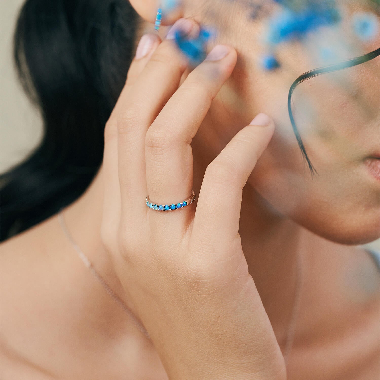 Inspired by clouds and the sky, the Oceana Ring features opals in a blue-to-white ombre arrangement. This burst of blue is bound to brighten your day.