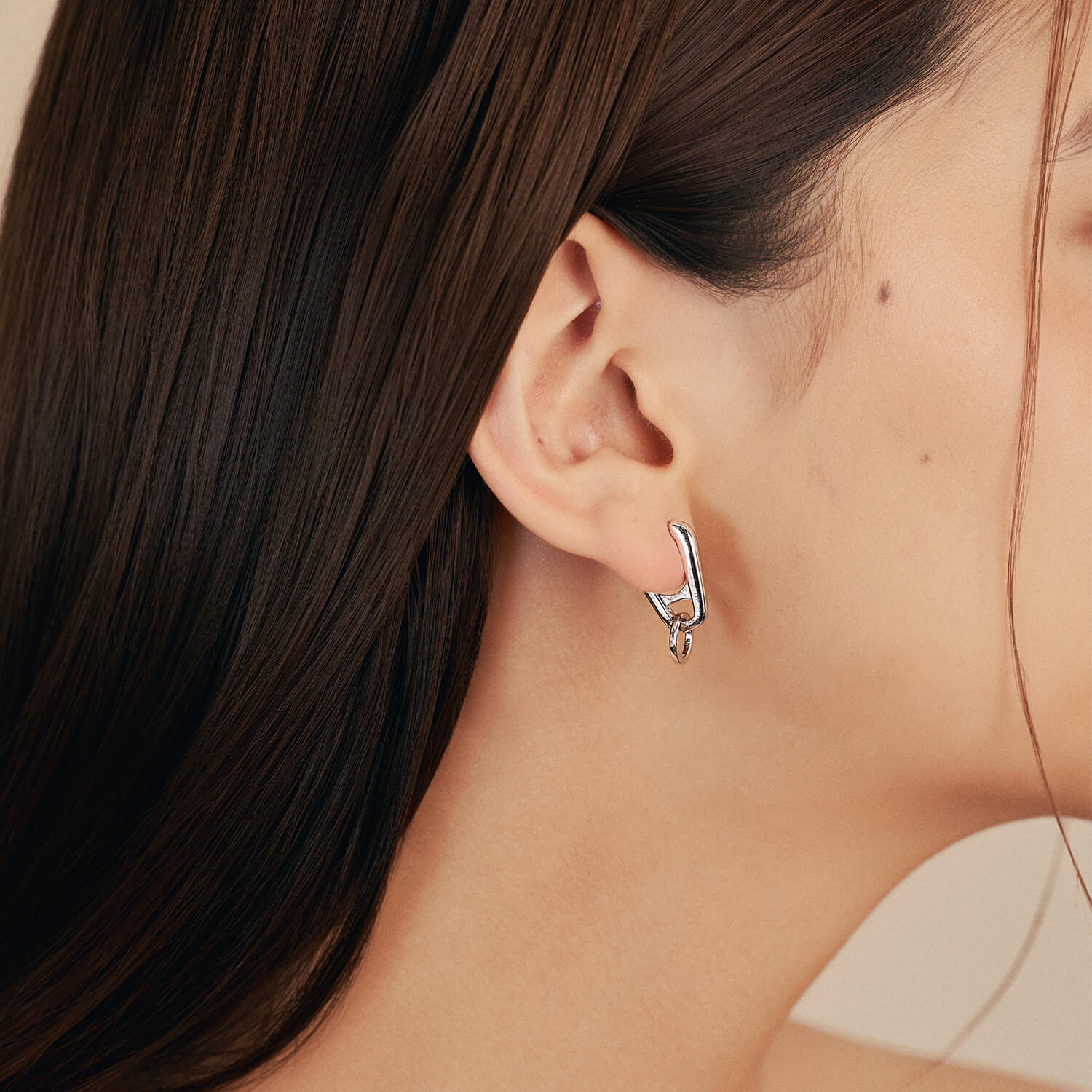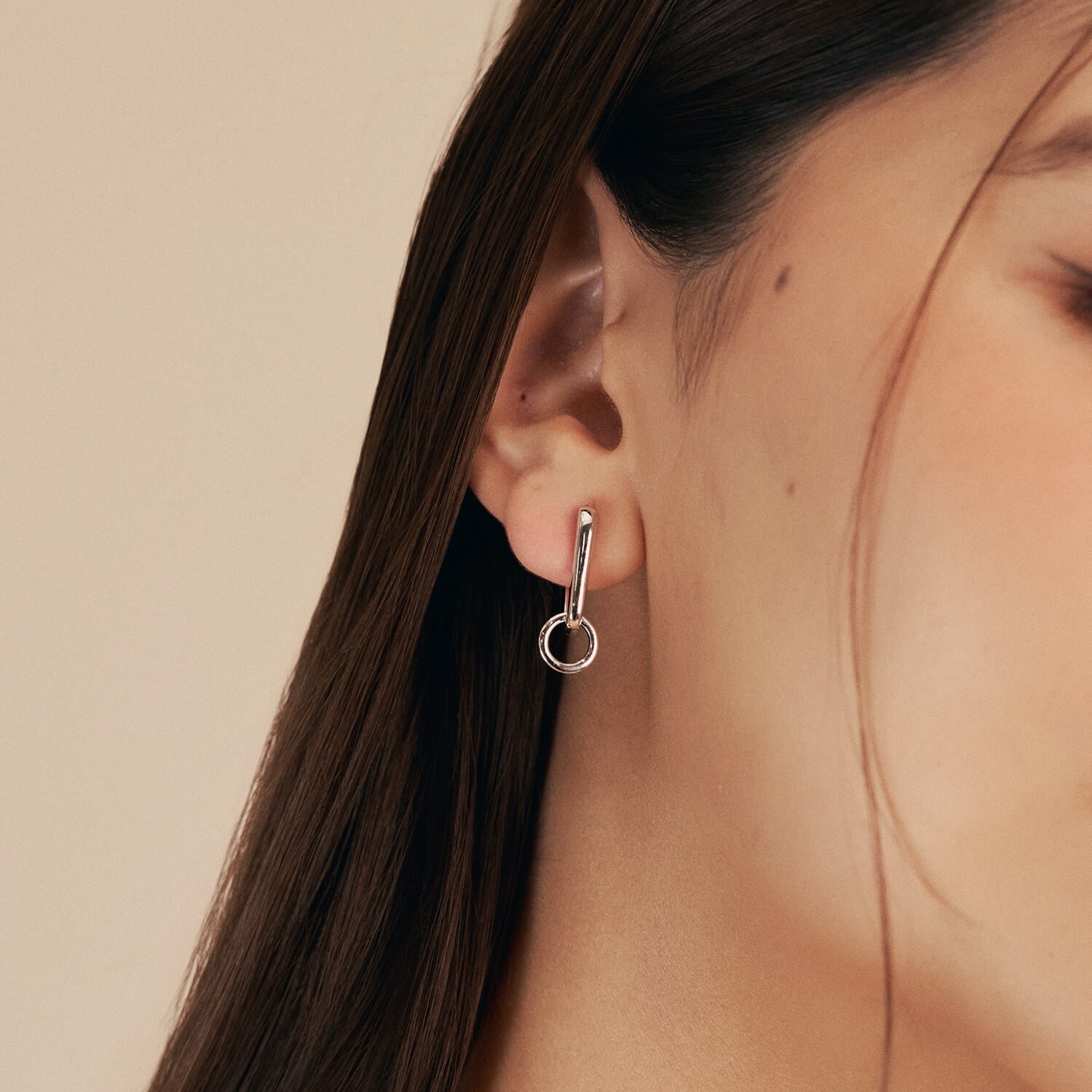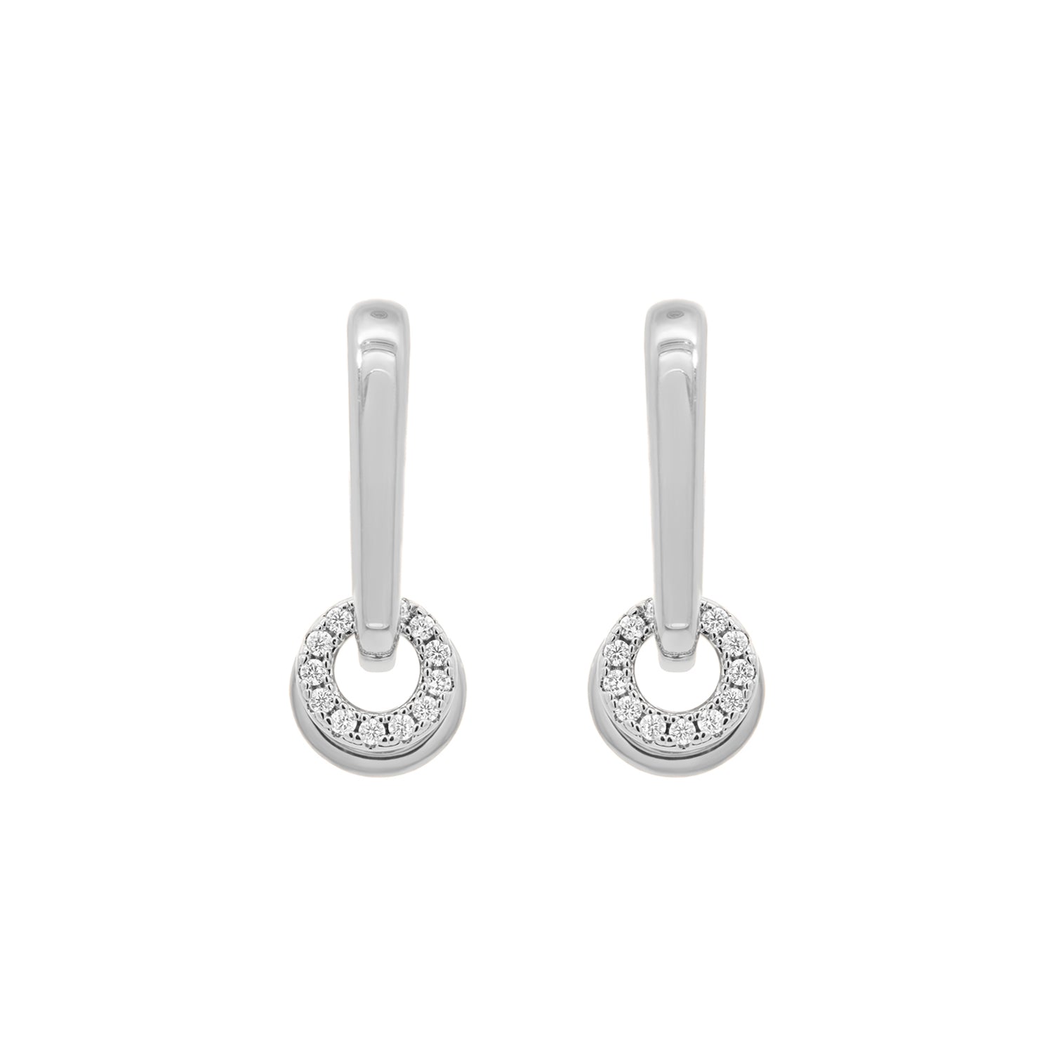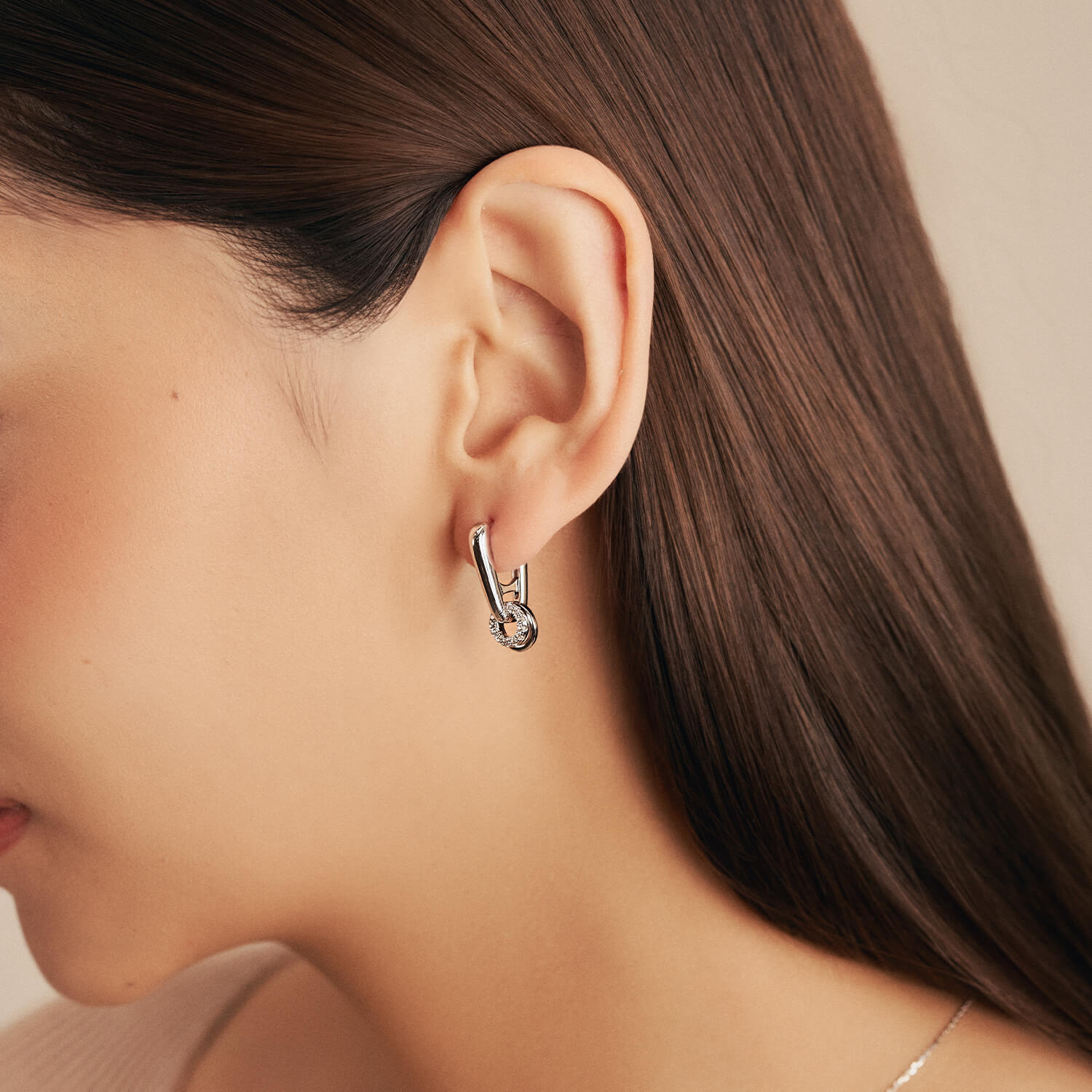 Edge and elegance cross paths in Zuri, a truly versatile piece inspired by can tabs. Featuring two circular rings, one encrusted with cubic zirconia stones and one unembellished, both charms can be removed. Wear Zuri as you like.